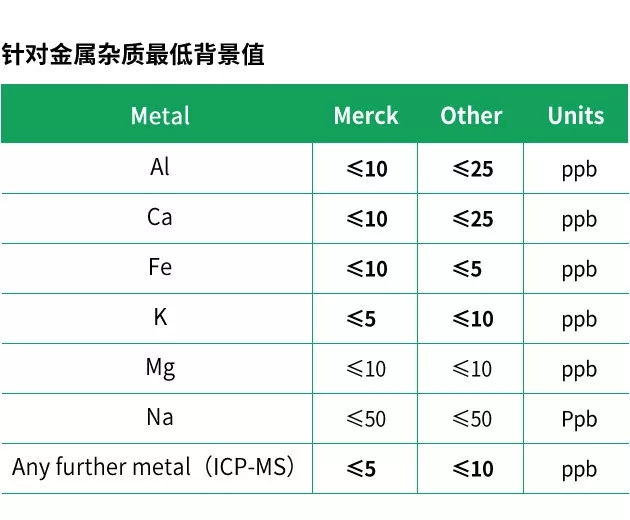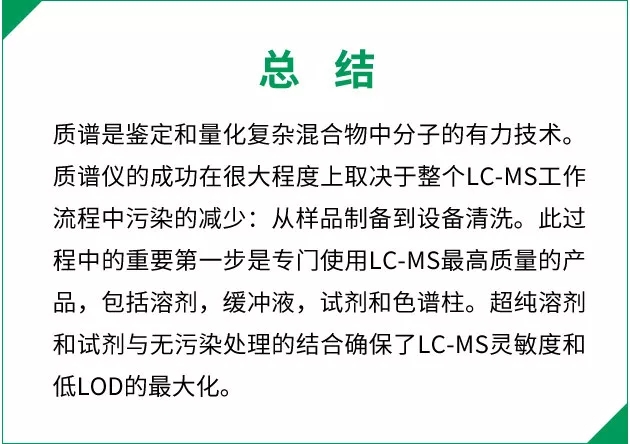 进行任何高灵敏度分析的前提是使用超纯溶剂作为流动相,溶剂中的杂质可能会影响分析结果的准确性和可重复性。