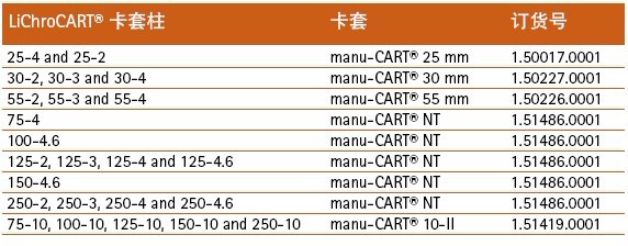 众所周知默克公司的色谱柱分卡套柱和标准柱两种。